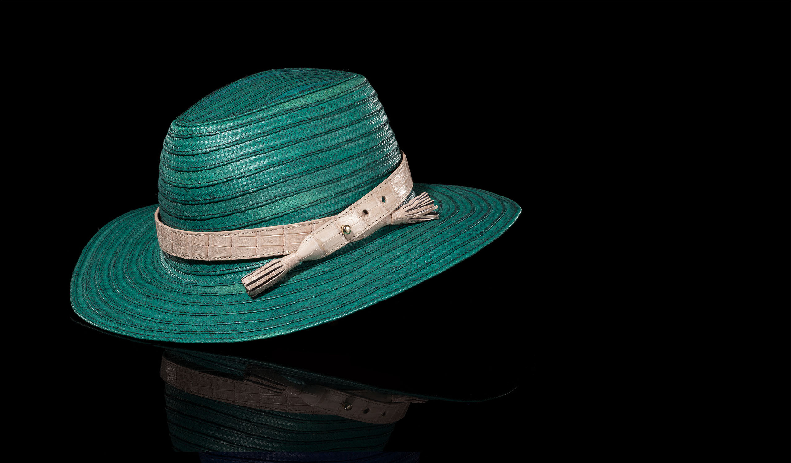 Removeable crocodile band with tasseled ends. Available in eight colours.